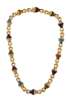 composed of stylised fish design links each with collet set circular cut ruby set eye and assorted ovoid cabochon set body, including peridot, pink tourmaline, citrine, blue topaz and amethyst, conjoined by fancy belcher form links, with concealed clasp and safety clip, signed and stamped 750, with original leather fitted case
