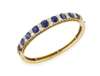 the front claw set with nine graduated cushion cut sapphires interspersed by pairs of old mine cut diamonds, the reverse composed of three knife bars, with safety chain