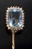 the rectangular aquamarine of good colour and a claw set border of circular cut diamonds, together with an opal set stick pin and a citrine set stick pin with snake motif (3)