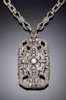 The sautoir as a piece of Jewellery reached its fashion zenith during the Edwardian era and was often composed of seed pearls, woven or twisted with tassel terminals, their delicacy suiting the stylish and elegant silhouette of the time. In the 1920s the sautoir was a vital accessory and ideally complimented the fashion of wearing low-waisted dresses. It was during that period that differing materials were used in their composition including chain links of diamonds of differing designs but always with the popular geometric style of the Art Deco period. They often suspended geometric pendants, or tassels made of pearls or precious stone beads and often with diamond connections