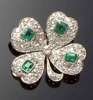 modelled as a four leaf clover, each leaf pave set diamonds surrounding an emerald of good colour