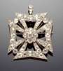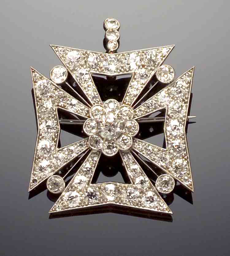 in the form of an open Maltese cross with a central cluster of diamonds and a single stone between each arm