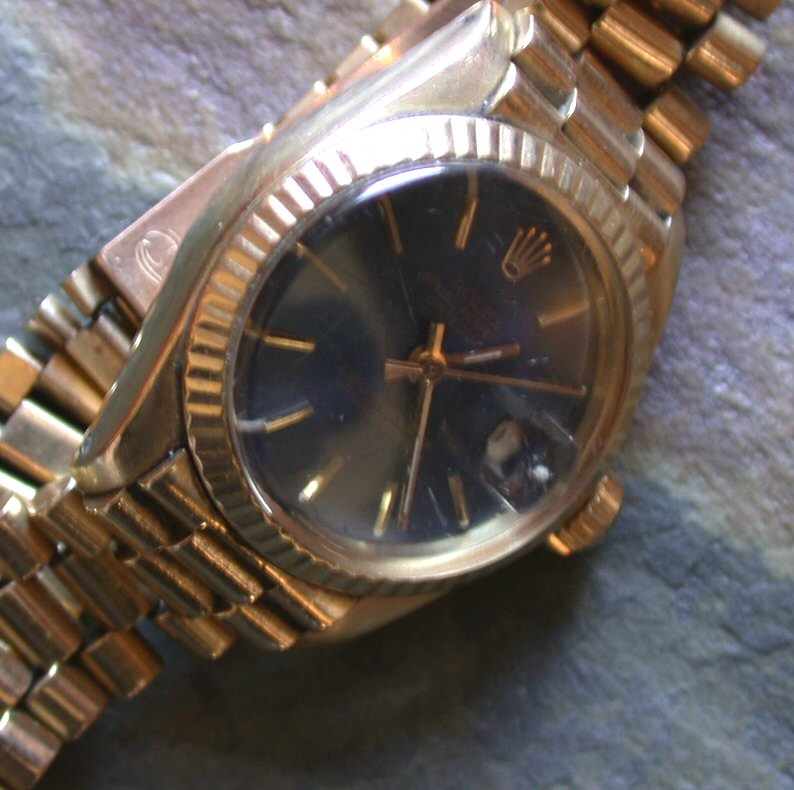 the circular blue dial inscribed 'Rolex Oyster Perpetual Datejust Superlative Chronometer Officially Certified' Sweep seconds hand and date aperature, gold Rolex bracelet and extra links
