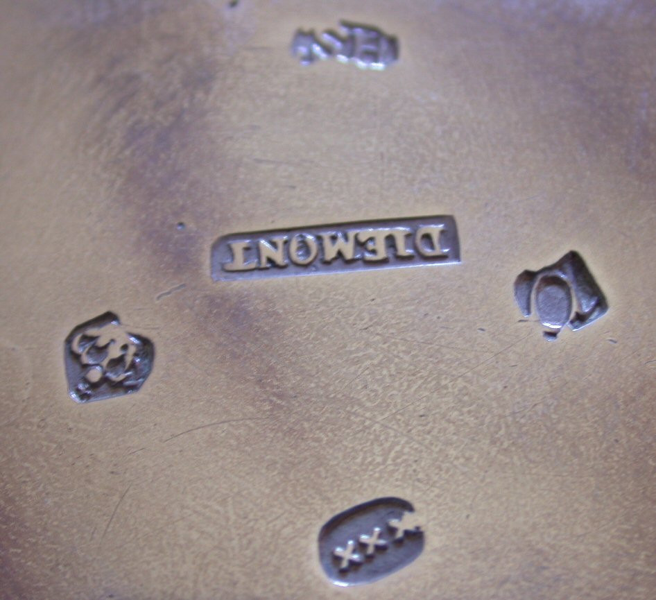 five marks including "Diemont" of tapering circular form, beaded swing handle, palmetic frieze, pierced body