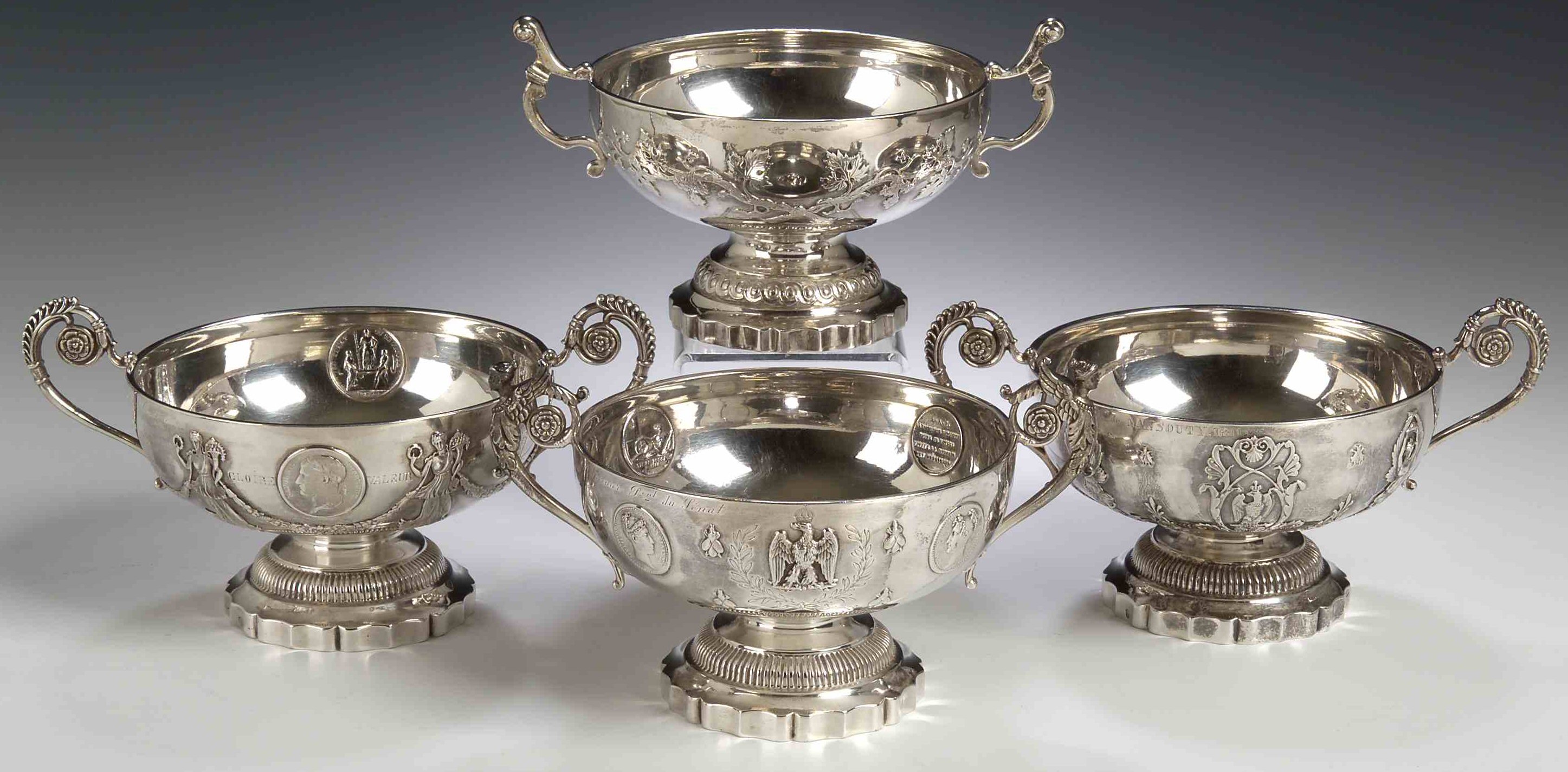 each of circular form, inscribed various mottos, applied Napoleonic bee motifs engraved Heroic inscriptions variously dated 1811, 1808