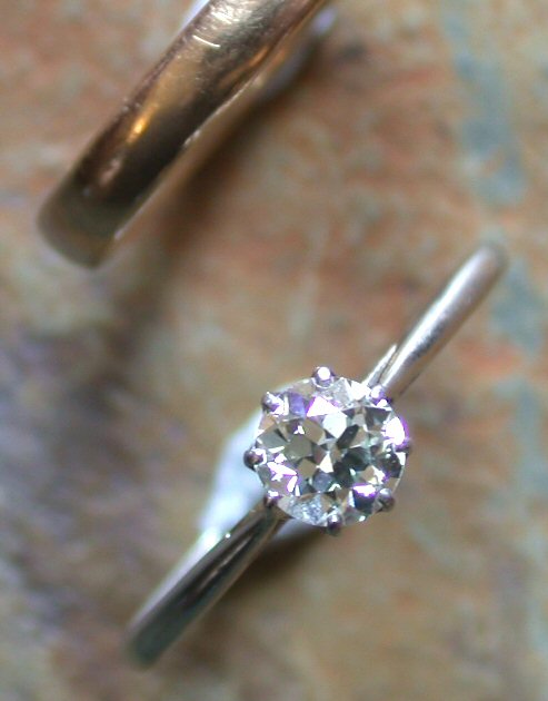 claw set in platinium circa 1920 and a wedding band (2)