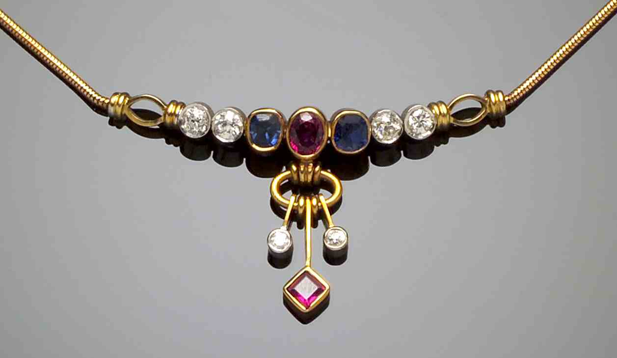A ruby, sapphire and diamond necklace