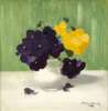 A STILL LIFE OF PURPLE AND YELLOW ROSES