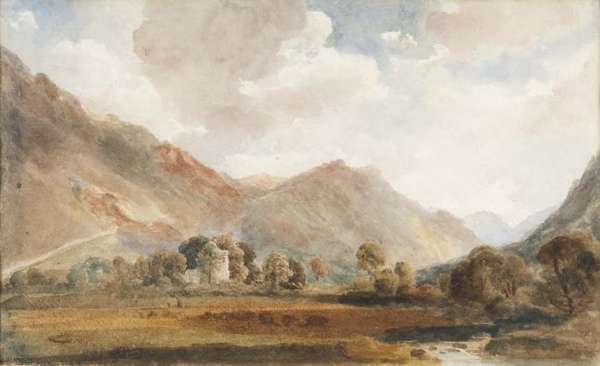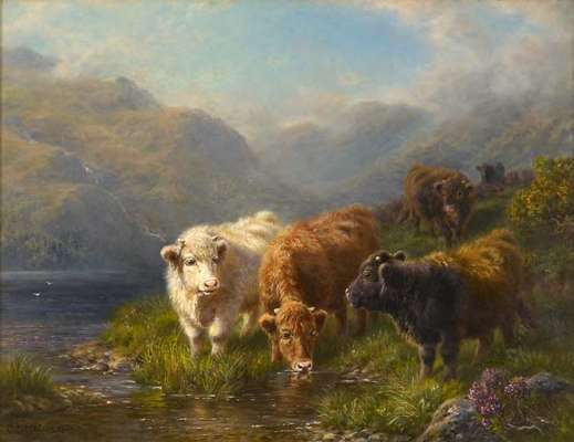 CATTLE WATERING IN A MOUNTAIN GLEN