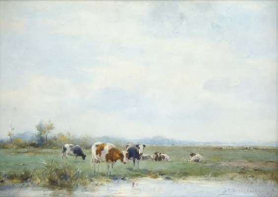 20cm x 30.5cm (8in x 12in) and a companion, a pair 'Cattle in a polder' (2)