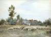 SHEEP GRAZING BY FARM BUILDINGS