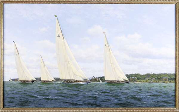 Note:The painting depicts the final series of J-Class races held within British waters. Endeavour was built in the United States in 1930 whilst the British produced Shamrock V for Sir Thomas Lipton. Endeavour was built by Nicholson for Sir Thomas Sopwith and Britannia was converted to J-Class for King George V.
