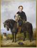 PORTRAIT STUDY OF A YOUNG BOY ON A SHETLAND PONY TOGETHER WITH HIS TWO DOGS