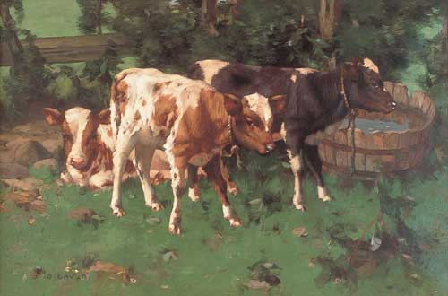 CALVES BY A WATERBUTT