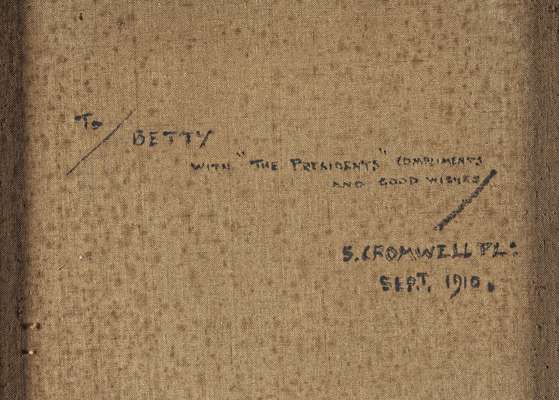 Signed, inscribed verso 'To Betty with 'The President's' compliments and good wishes', S.Cromwell Rd, Sept. 1910, oil on canvas