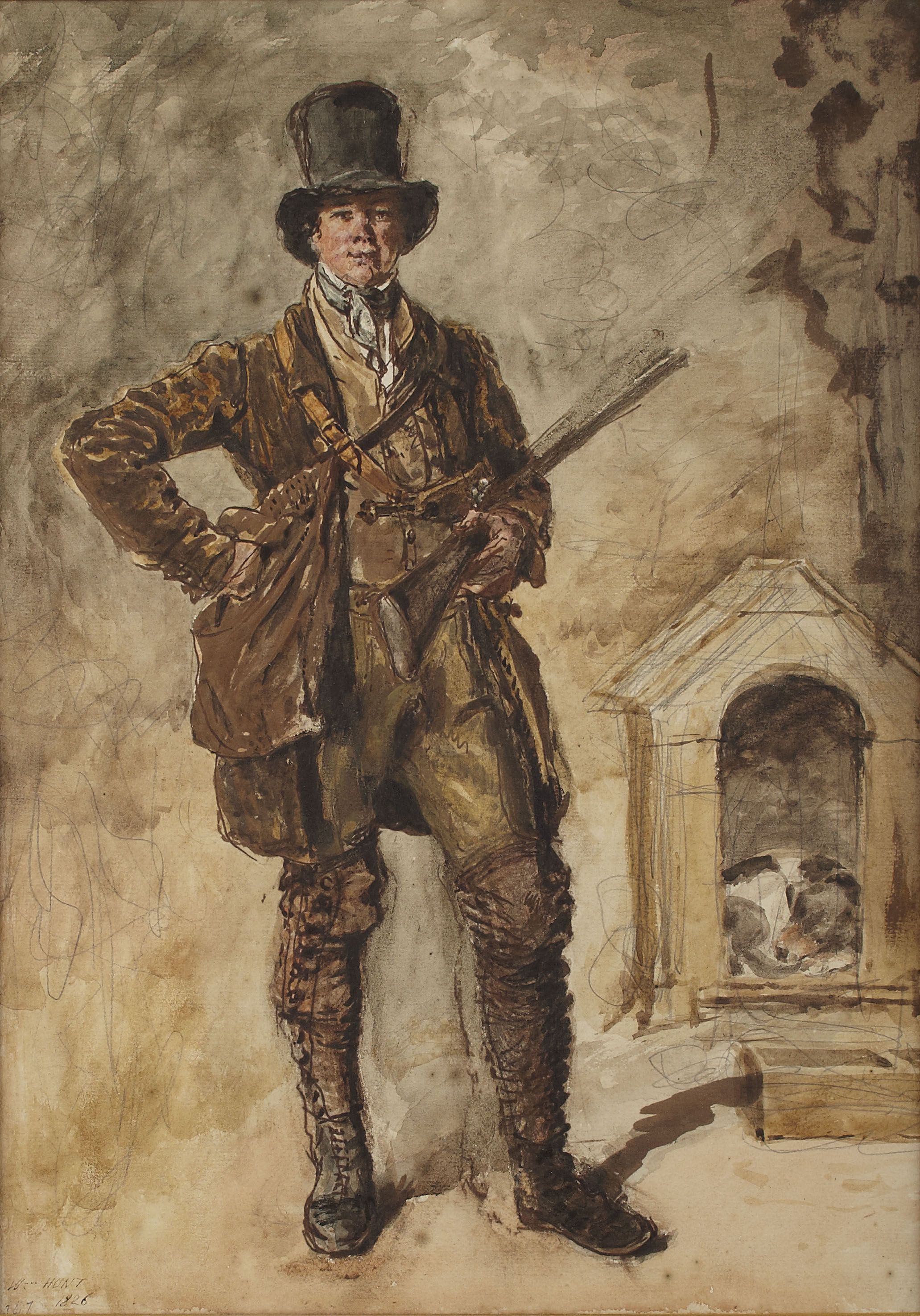Exhibited:This is probably the painting exhibited at the O.W.S. 1826 no.69 as 'A gamekeeper in the service of Charles Dixon Esq'
