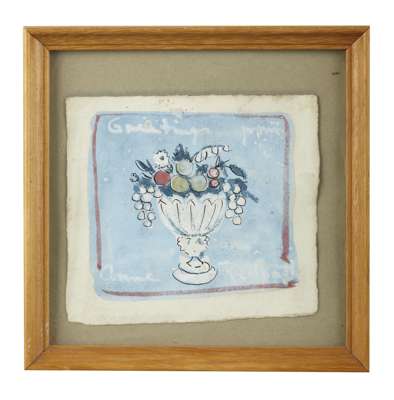 Signed and inscribed 'Greetings from Anne Redpath', gouache