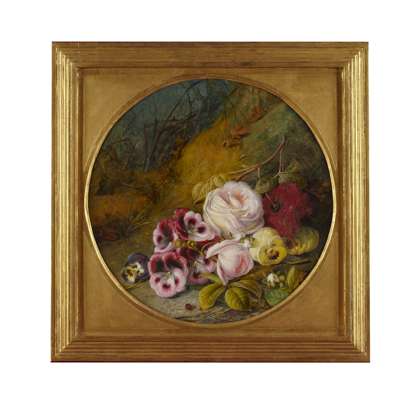 Inscribed and dated verso 'Manchester 1861', oil on canvas, circular