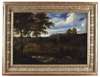 A WOODED RIVER LANDSCAPE WITH BARGE, FIGURES AND ANIMALS