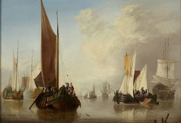 CALM SEAS WITH FISHING BOATS AND MAN-O-WAR