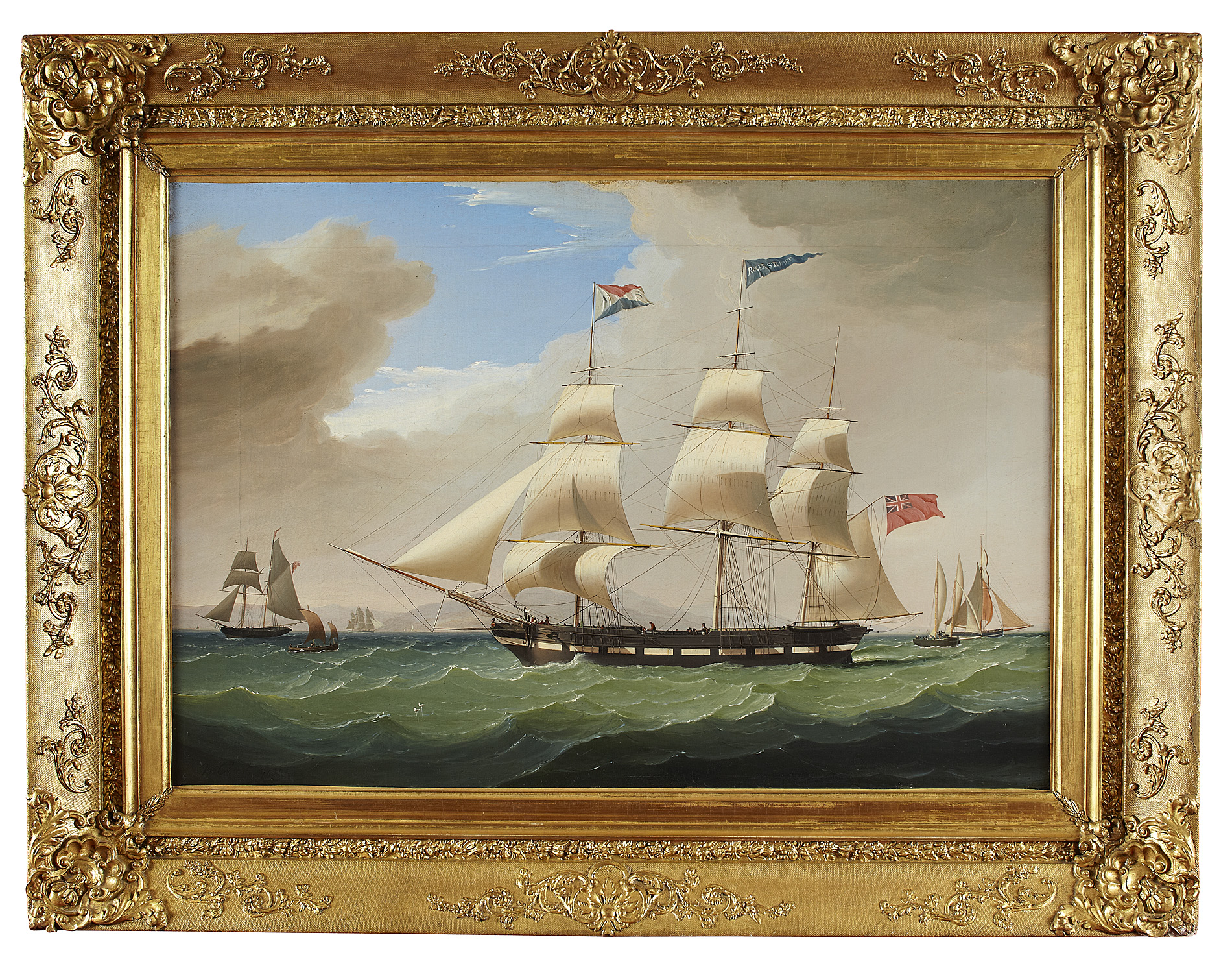 Note: It is believed that this painting depicts the passenger ship 'Roger Stewart'. Records indicate that it was built in Greenock in 1812. Between 1832-1836 under Captain Robert Kerr, the 'Roger Stewart' ferried emigrants from Scotland to Savannah, Quebec, Charleston and New York.