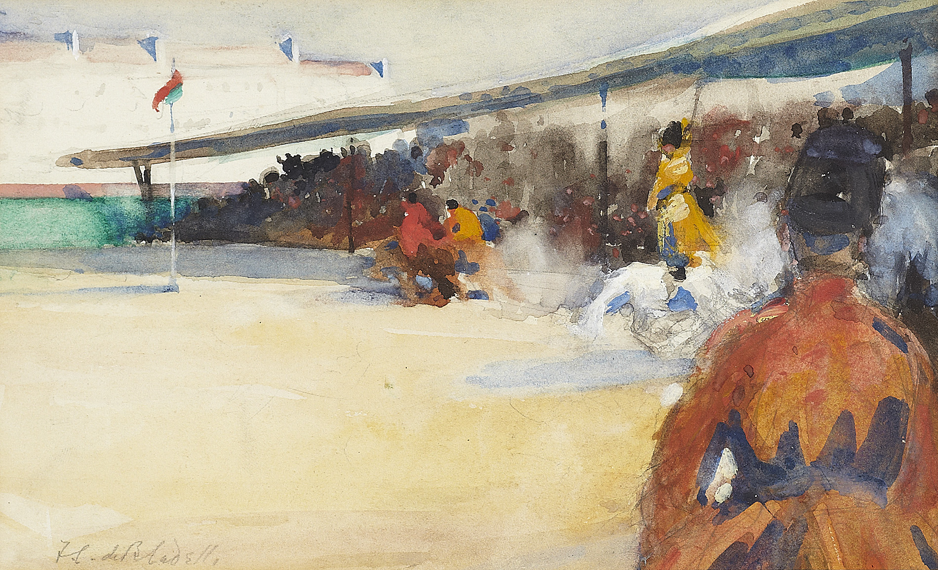 A further inscription states that the watercolour was purchased from Cadell's studio in c.1928 by Mrs B J B MacArthur.