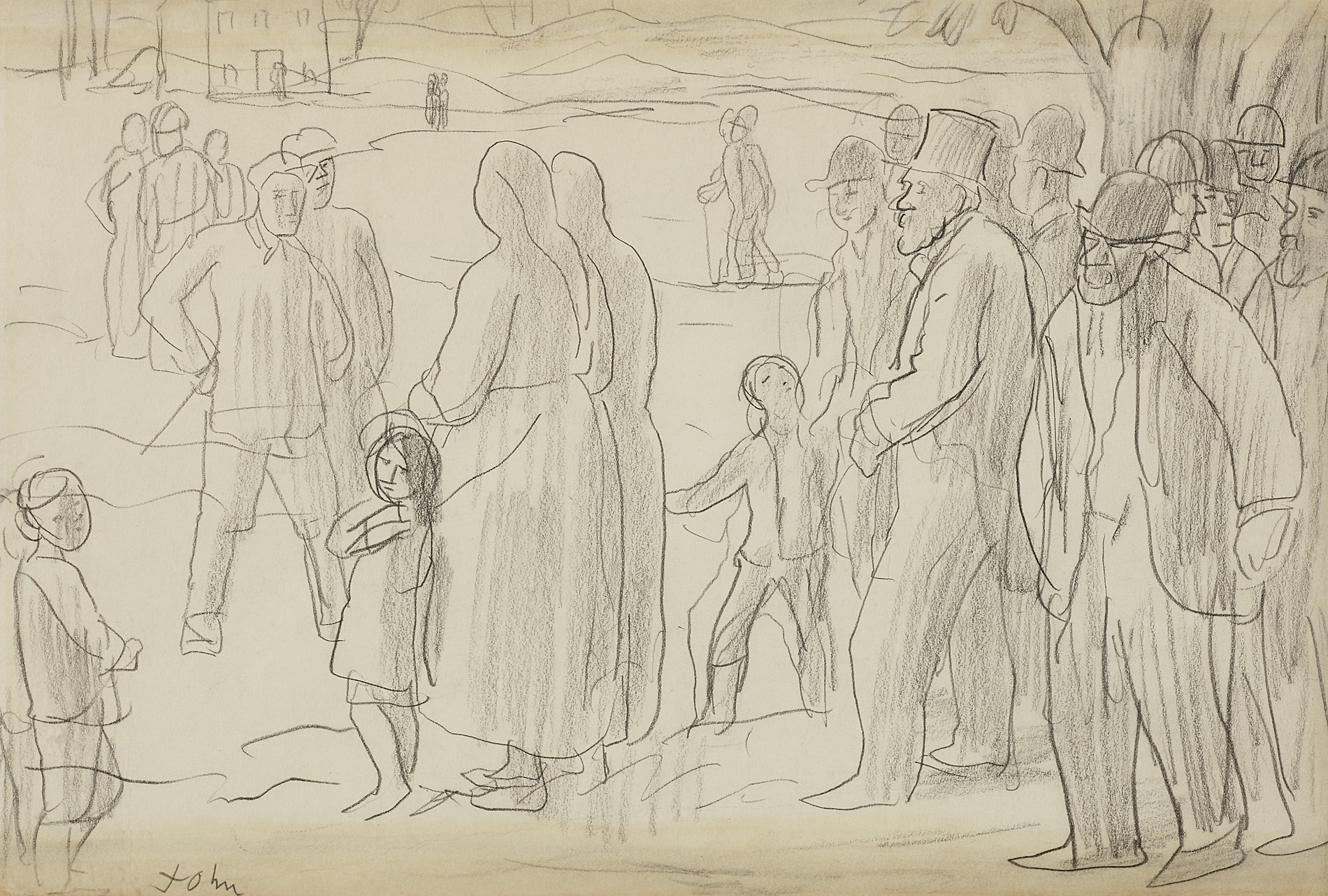Note: This work is a study for John's largest mural. Painted in 1915, it is a study of Galway City in the West of Ireland.