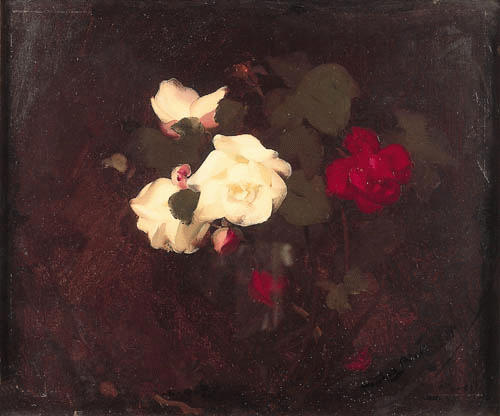 A STILL LIFE OF RED AND WHITE ROSES