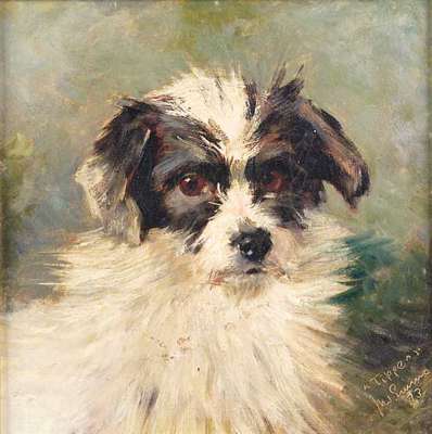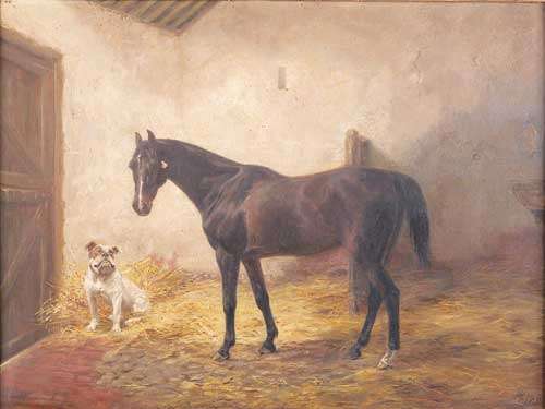 STUDY OF A HORSE AND BULLDOG IN A STABLE