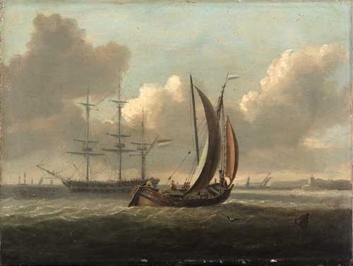 A DUTCH BARGE AND OTHER SHIPPING OFF THE COAST