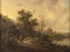 A WOODED RIVER LANDSCAPE WITH FIGURES ON A COUNTRY PATH