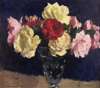 A STILL LIFE OF RED AND YELLOW ROSES