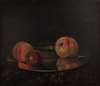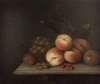A STILL LIFE OF GRAPES, PEACHES AND CURRANTS ON A MARBLE LEDGE