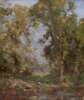 A WOODED RIVER LANDSCAPE WITH PUNT