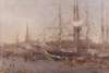 A BUSY HARBOUR SCENE AT DUSK