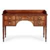 the top with a three-quarter gallery above a concave drawer flanked by two short drawers on one side and a cupboard on the other, raised on ring-turned tapered legs