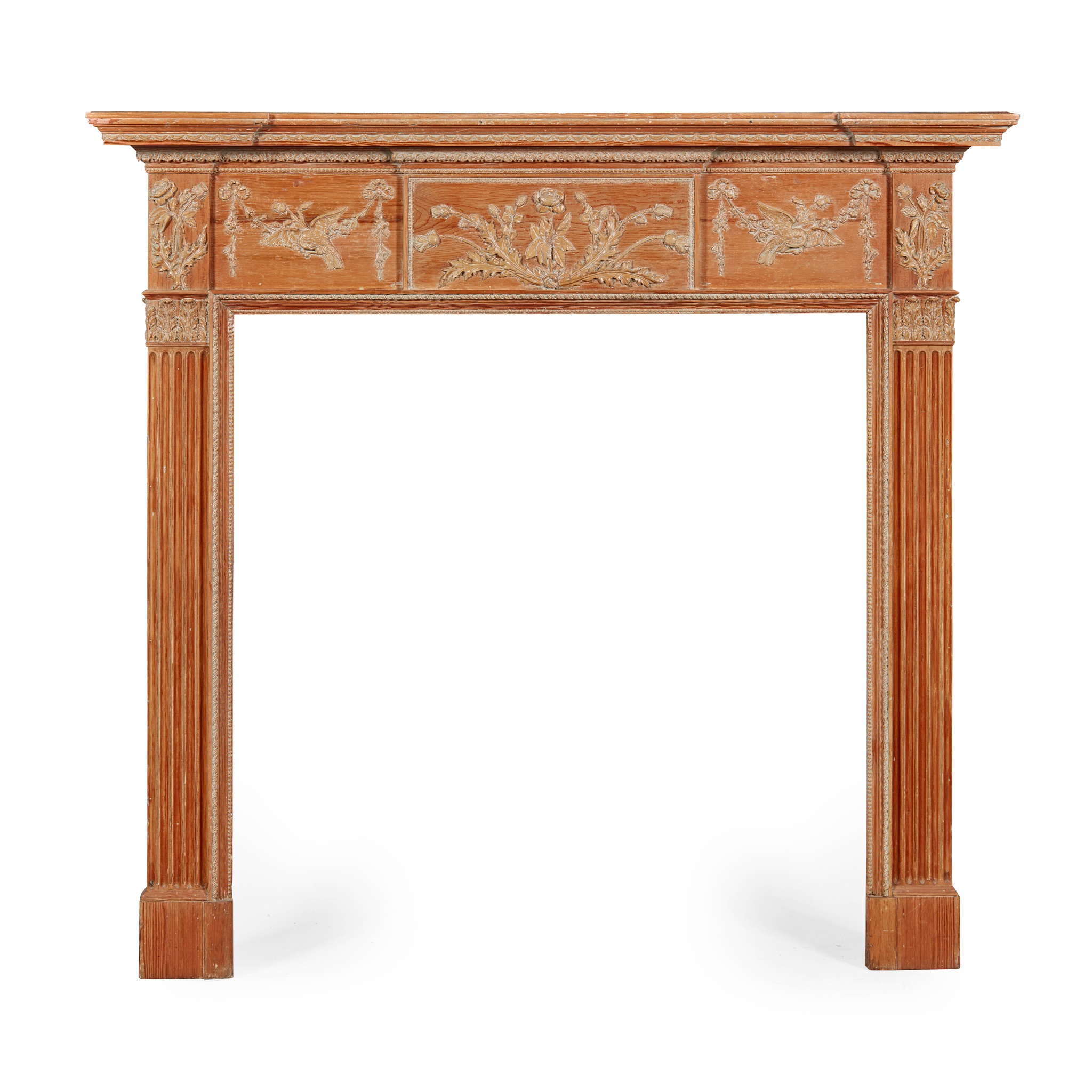SCOTTISH STRIPPED PINE AND GESSO FIRE SURROUND