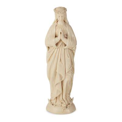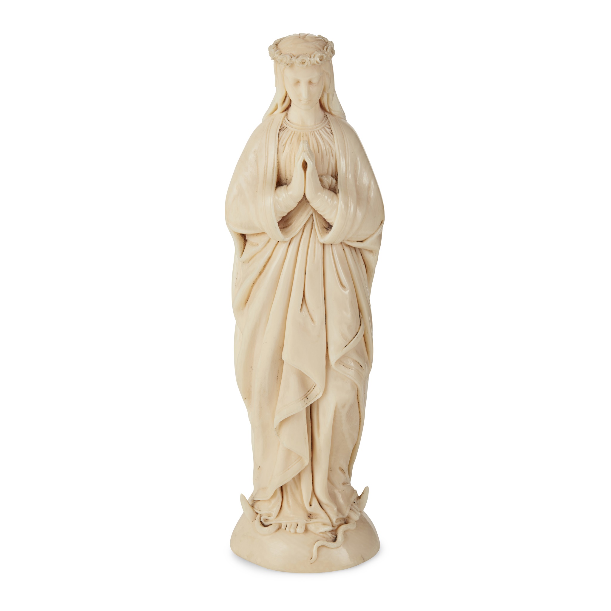 CARVED IVORY FIGURE OF THE VIRGIN AND THE SERPENT Y