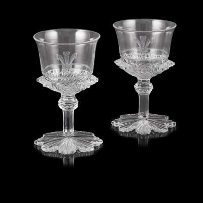 FINE PAIR OF PERRIN GEDDES PRINCE OF WALES SERVICE WINE GLASSES