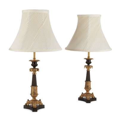 PAIR OF REGENCY PATINATED AND GILT BRONZE LAMPS