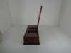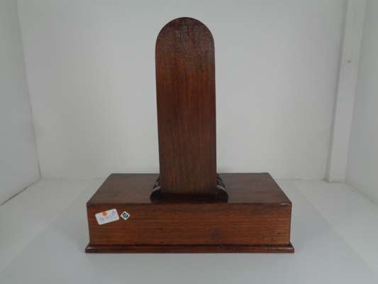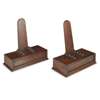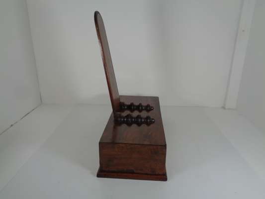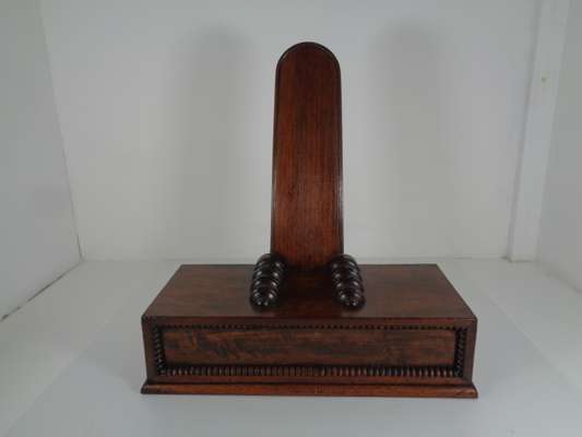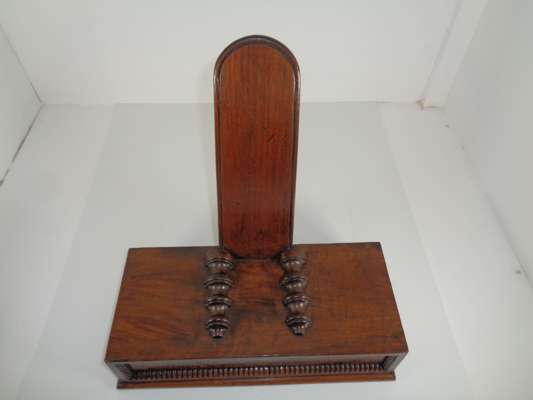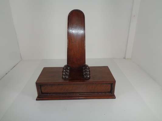 with angled upright supports and turned receivers above weighted bases fronted by bead moulded panels