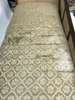 of large size, the foliate carved frame with scrolled ends and a shaped back panel all with caned double walls, with a loose cushion seat raised on removable splay legs ending in brass caps and castors