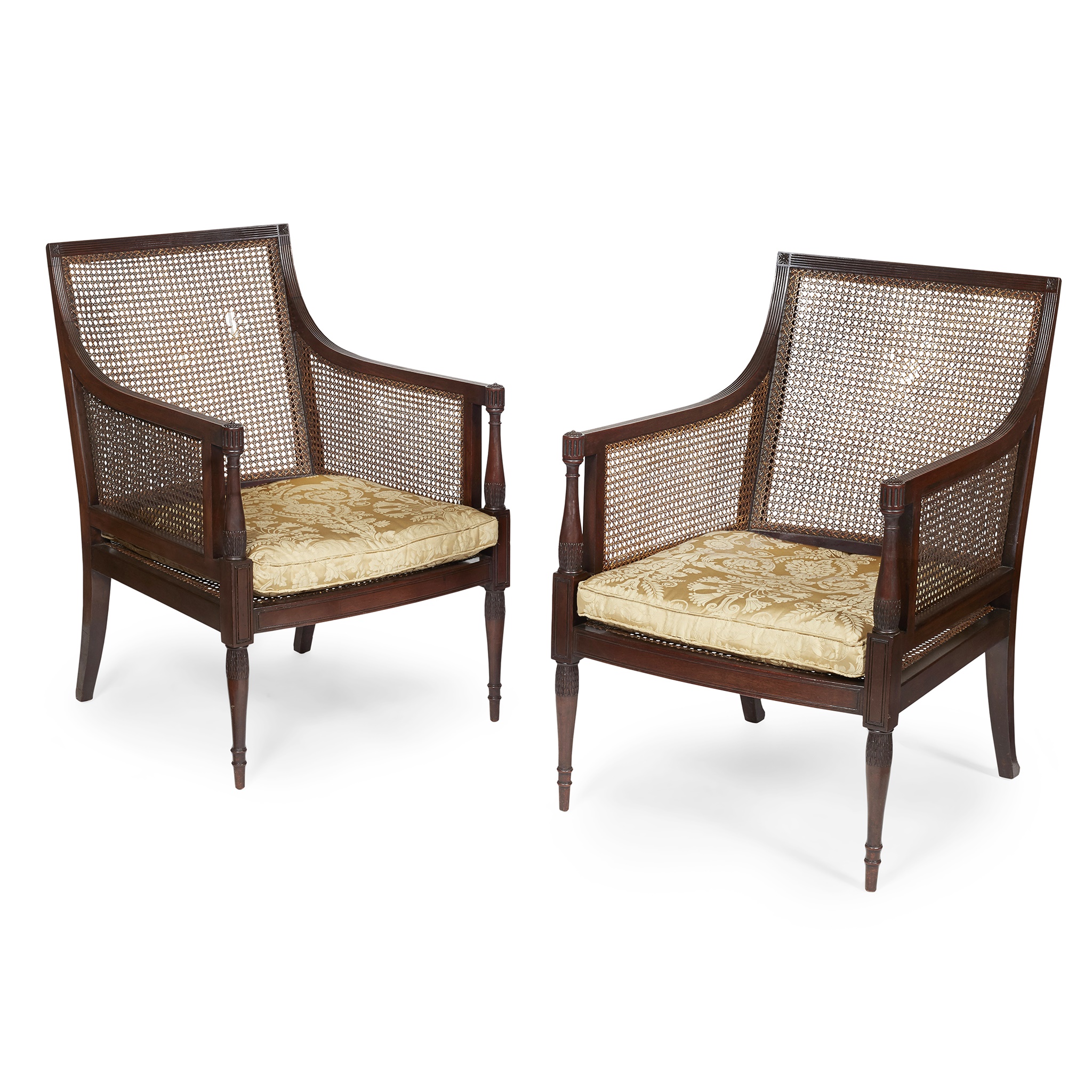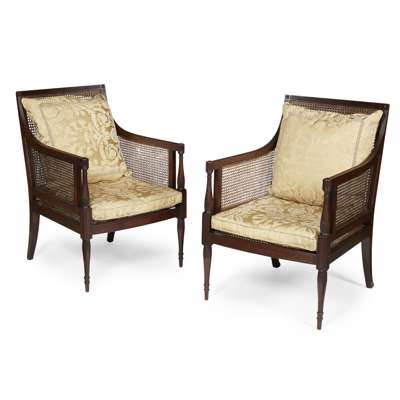 PAIR OF REGENCY STYLE MAHOGANY BERGERES