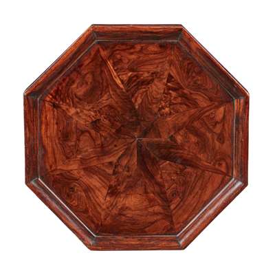 the octagonal top with a moulded edge with star-motif veneers, on a baluster column and tripod base ending in pad feet
