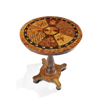 JAMAICAN MARQUETRY AND PARQUETRY OCCASIONAL TABLE, ATTRIBUTED TO THE WORKSHOP OF RALPH TURNBULL
