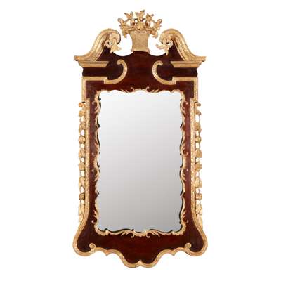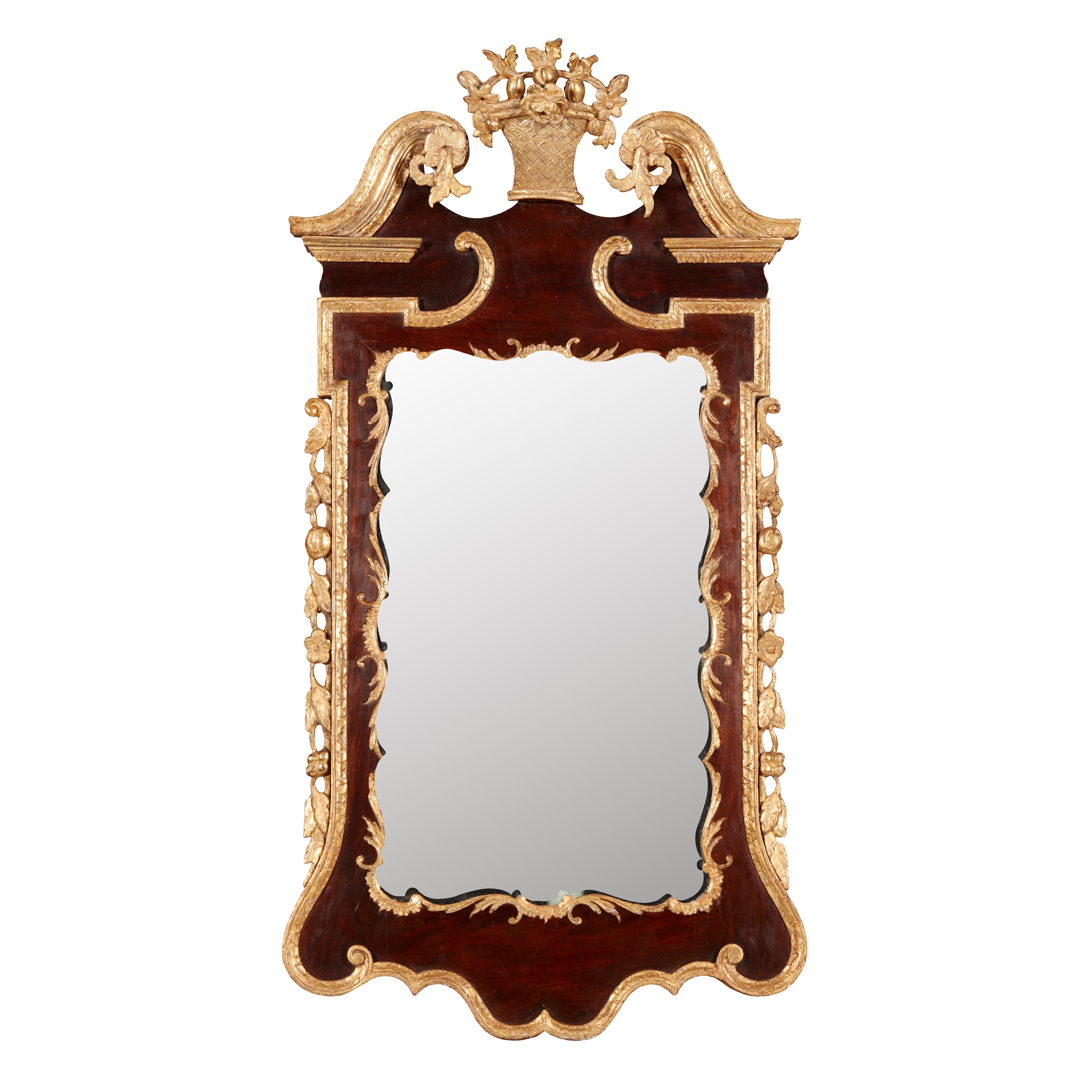 GEORGE II WALNUT PARCEL-GILT MIRROR
