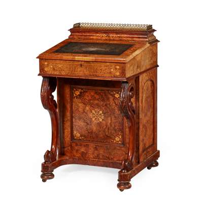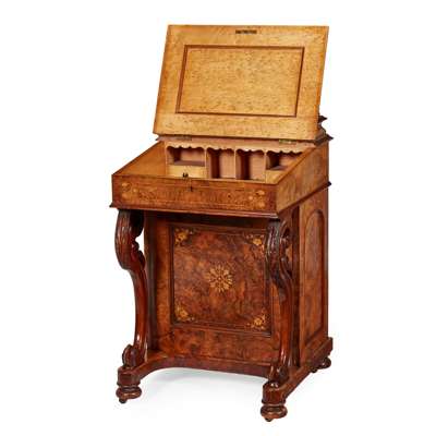 VICTORIAN WALNUT, MAPLE, AND MARQUETRY DAVENPORT