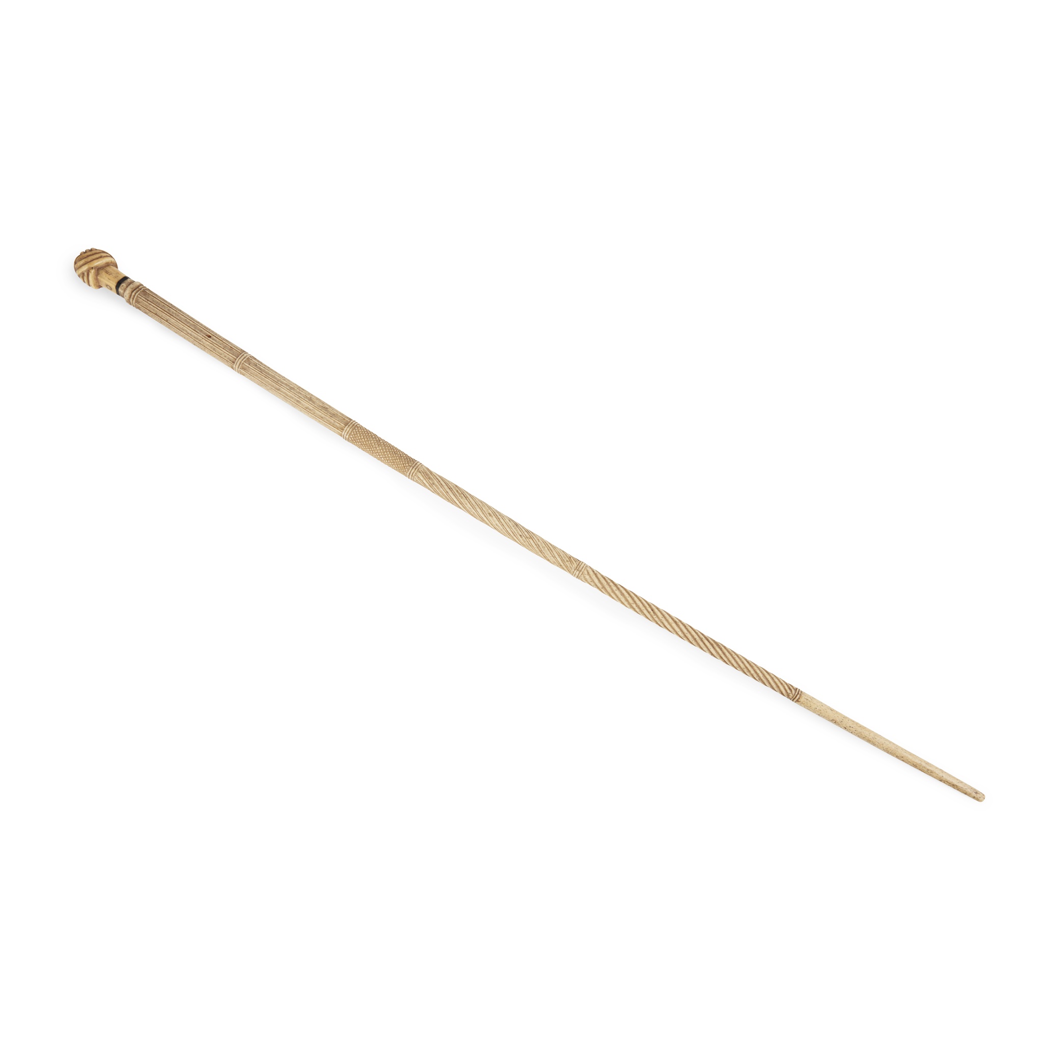 CARVED WHALE BONE AND MARINE IVORY WALKING STICK Y