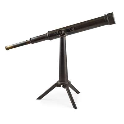 3 -INCH REFRACTING PATINATED BRASS TELESCOPE AND STAND