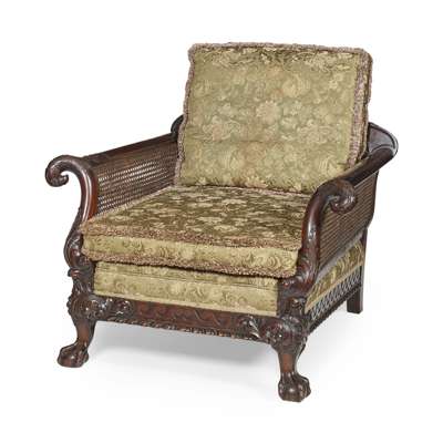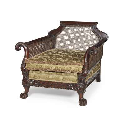 GEORGIAN STYLE MAHOGANY TWO PIECE BERGERE SUITE, ATTRIBUTED TO GILLOWS & WARING